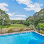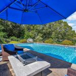 Step outside and enjoy resort-style amenities, including a sparkling saltwater pool, two expansive stone patios, and a custom mahogany deckâperfect for relaxing or entertaining. A detached barn/shed structure offers additional storage or workshop space, complementing the attached two-car garage.